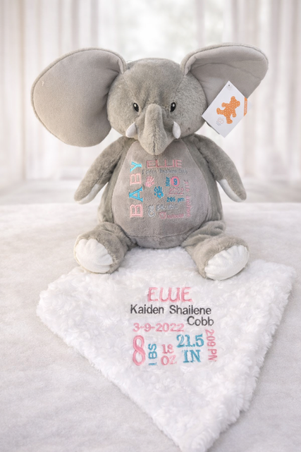 At May-B Sew Stitchery, we offer custom Embroider Buddy® plush products that are perfect for personalized gifts and keepsakes. Designed for easy embroidery, these high-quality plush items allow us to create one-of-a-kind pieces with names, logos, or special messages—crafted with care and made to last.